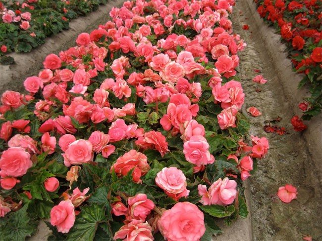 Бегонии садовая: посадка и уход, — растения высаживают на постоянное место весной, с наступлением теплой погоды. Клубневые бегонии предварительно проращивают в теплицах, на клумбы часто высаживают подросшие растения с цветами. Вечноцветущая бегония высаживается с первыми цветами, что позволяет сразу получить декоративные клумбы. Именно поэтому сорта бегонии вечноцветущей широко используются в ландшафтном дизайне.
