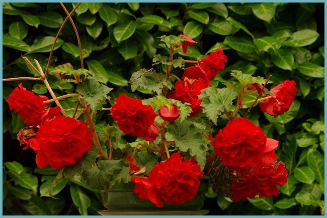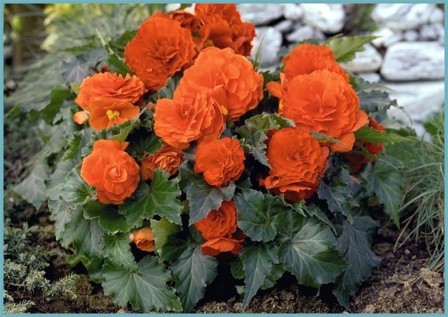 Садовые бегонии образуют прекрасные сочетания в посадках с газонными травами, декоративно-лиственными культурами, бордюрными летниками: