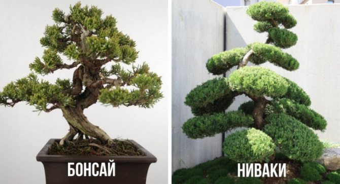 Дословный перевод японского выражения «Niwaki» означает «садовое дерево», в отличие от «бонсай» — «горшечное дерево». Ниваки — большие и лёгкие формы растений, которые уходят корнями в землю. Бонсай — маленькие и сложные конфигурации, которые остаются в горшках для домашних коллекций.