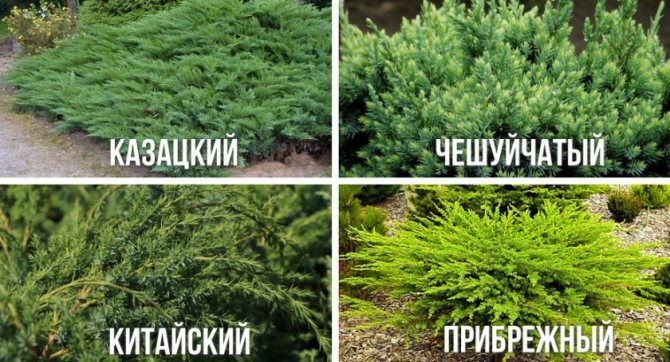 - казацкий (sabina) — растёт в виде стелющегося кустарника до 1,5 м или дерева до 6 м;