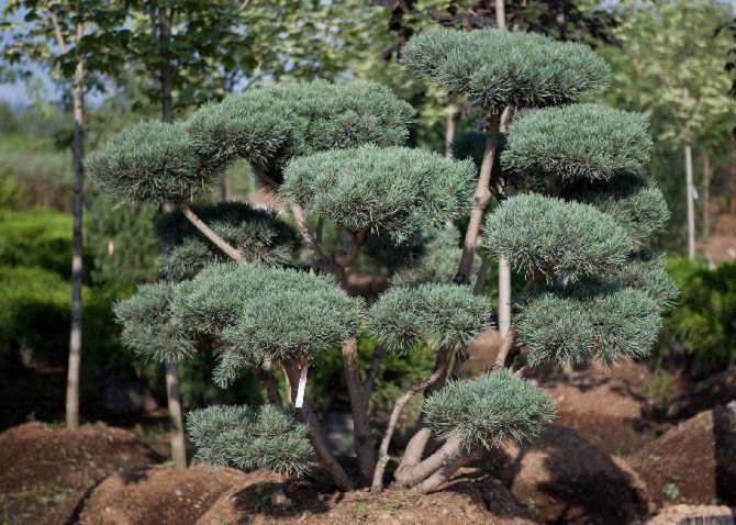 - чешуйчатый (squamata) — невысокие кусты в 1,5 м, хвоя голубая, жёсткая;