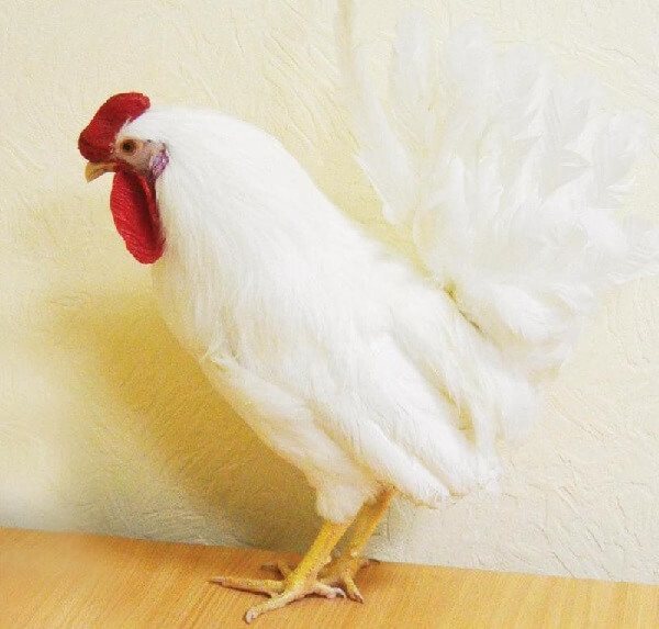 Оперение и окрас | белое, перьевой покров не густой, но плотный (в период максимальной яйценоскости куры из-за дефицита питательных веществ выглядят ободранными) |