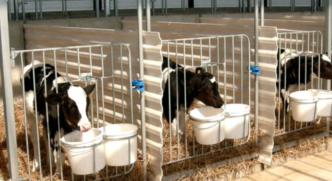 Приспособления для корма и воды могут быть автоматическими или ручными. Первый вариант будет оправдан для большого поголовья и только взрослых животных, за рацион которых уже нет надобности следить. Ручной способ используется в домашних хозяйствах и при кормлении телят или молодых коров на этапе контроля за рационом. Кормушки могут быть сделаны из любых ёмкостей.