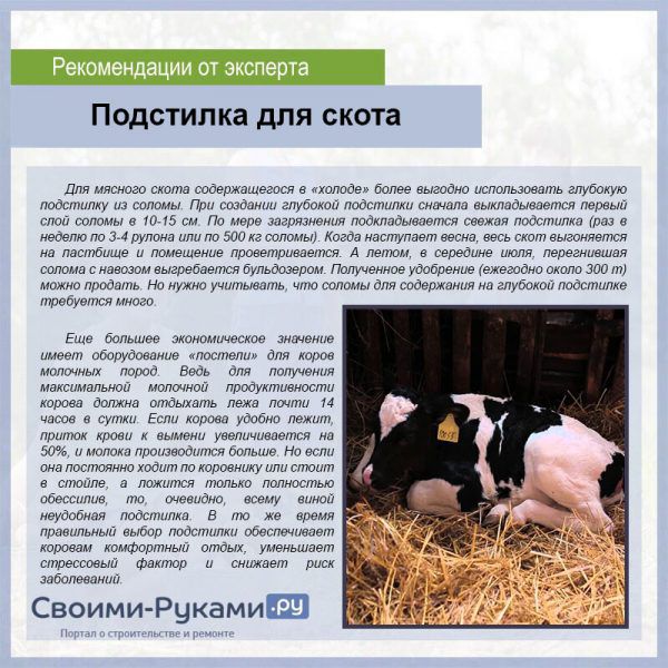 Важно! На грязную и мокрую подстилку корова никогда не ляжет. В результате она будет уставшей, что приведёт к сокращению удоев
