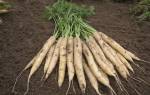 - Слоновий клык – среднеспелый урожайный лежкий сорт с белыми корнеплодами длиной до 25 см;