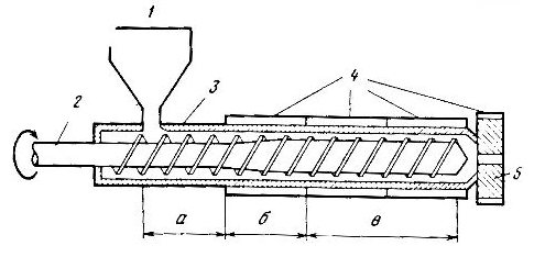 В верхней части корпуса расположены окно для загрузки продукта и люк для доступа в машину. В торцовой части корпуса находится съемный фланец, служащий для монтажа и демонтажа шнека. На противоположном от привода конце вала шнека установлена звездочка, от которой через цепные передачи осуществляется привод дозатора мелассы и жира. Дозаторы мелассы и жира подают продукт через гибкие рукава в форсунки 3, туда же поступает пар для распыления жидких добавок.
