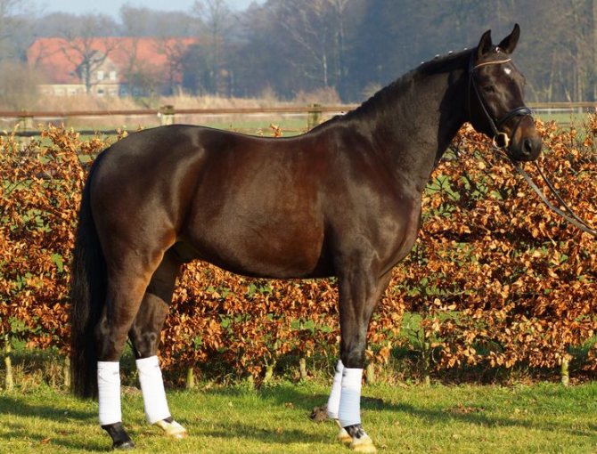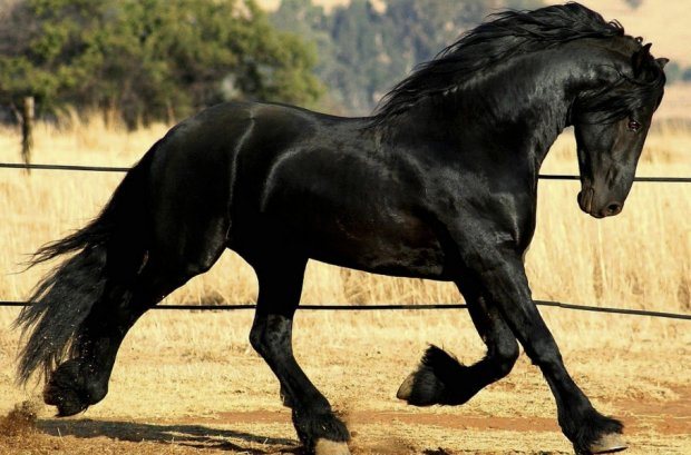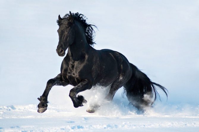 Удивительные фризские скакуны поражают людей красотой и грациозностью. Массивное мускулистое тело, высоко вскинутая голова и изящные ноги делают этого коня похожим на мраморную статую. Высота фризского жеребца составляет 163 см. Жеребенок чистокровной породы оценивается в десять-двадцать тысяч долларов. Цена скакуна при хорошей физической подготовке увеличивается. Черный фризский конь – самый красивый конь в мире.