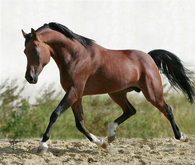 Арабские лошади – древняя порода, которая была выведена в IV—VII веках н.э. на территории Аравийского полуострова. Арабские верховые лошади приняли участие в создании множества других пород – английской верховой, оо рловской лысистой, берберийской, русской верховой, лузитано, андалузской першерон, липпицан и др. Благодаря высокой выносливости, арабы регулярно принимают участие в длительных конных пробегах, которые длятся 5-6 дней, причем в каждый день необходимо преодолевать расстояние до 100 миль.