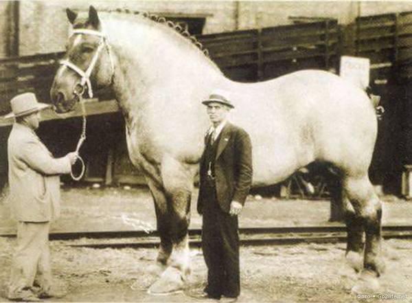 Победителем нашего топа самых больших лошадей в мире становится Английский жеребец Великий Сампсон. Конь-гигант весил около 1520 кг, высотой был в 2,20 м. Принадлежал к породе шайров и имел ещё другое имя – Мамонт. Жил он в XIX веке. Сампсона давно нет в живых, но его рекордные размеры заставляют признавать его фаворитом рейтинга самых-самых. В возрасте 4-х лет это было самое мощное и громадное животное из семейства лошадиных.