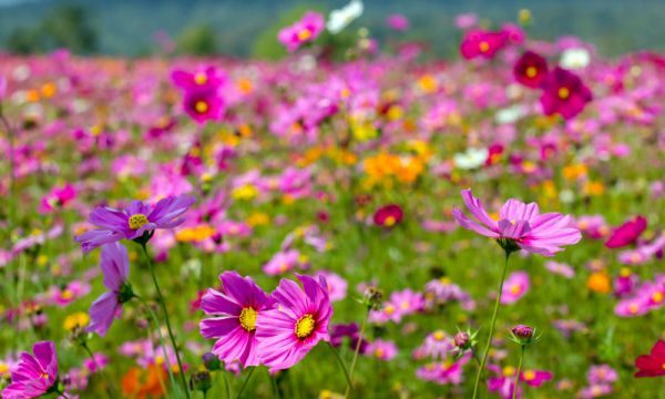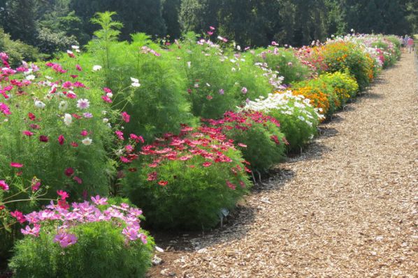 Космея – уникальное растение, которое дает множество идей для ландшафтного дизайна. При помощи этих цветов можно оформить яркую живую изгородь, создать декоративный цветник в клумбе или спрятать за высокорослыми растениями некрасивый деревянный забор. А еще космею активно применяют для озеленения городских парков и клумб.
