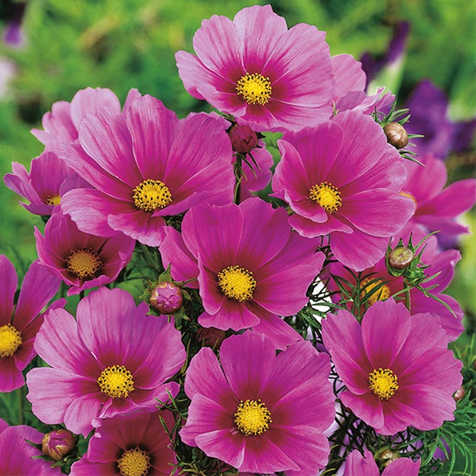 Морские ракушки или Си Шелс (Sea Shells) Обладает интересными язычковыми цветами розового, белого, карминно-красного, малинового цветов. Растения, посаженные на фоне зелени кустарников, прекрасно оживляют композицию рабаток. Достигают высоты 90 см. |