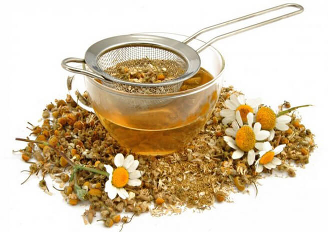 - Отвар ромашки — отличное успокаивающее средство. Его применяют для успокоения зуда при аллергических высыпаниях на коже или раздражениях.