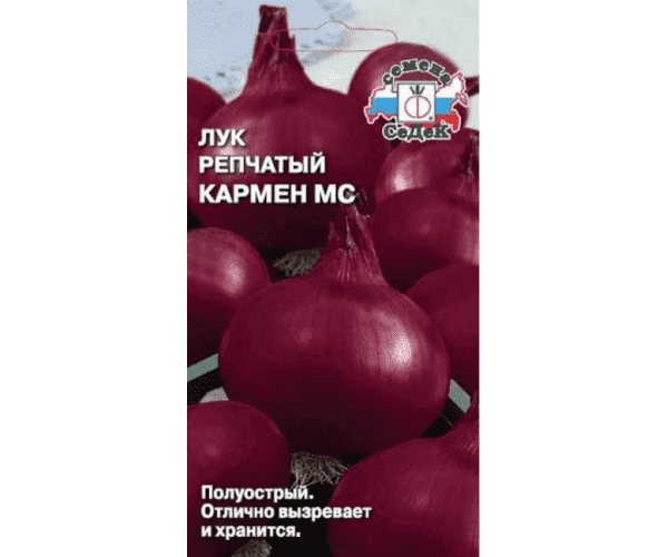 Существует также репчатый сорт Кармен МС, по описанию отличающийся от Кармен наличием белых прожилок.