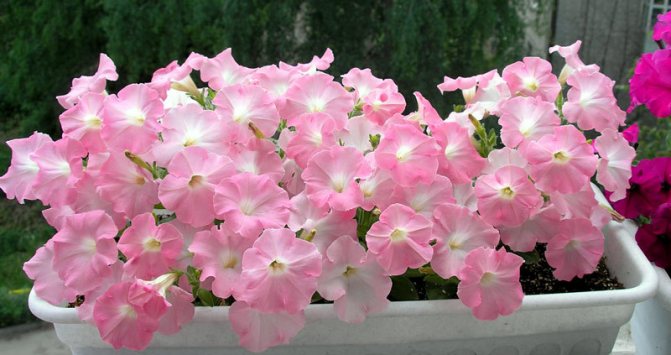 Петуния подходит для выращивания в подвесных кашпо и в открытом грунте.