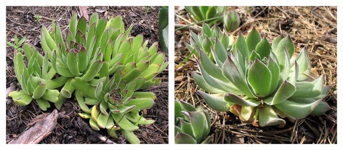 Нередко за эхеверию принимают родственное растение – молодило, которое распространено в Европе, на Кавказе и в Азии. Оно также называется каменная роза и на внешний вид растения очень похожи. Молодило отличается большей морозоустойчивостью, поэтому его выращивают даже не в помещениях. Эхеверия же может погибнуть, если температура воздуха ниже 6 градусов выше нуля. Кроме того, у молодило нет стеблей.