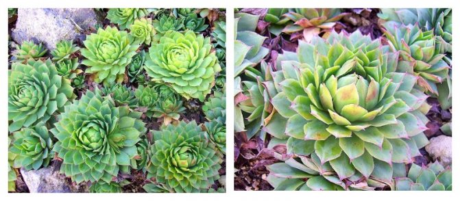 - Шарообразное. Этот вид встречается на территории Кавказских гор. По форме розетки напоминают зеленые шарики размером пять сантиметров.