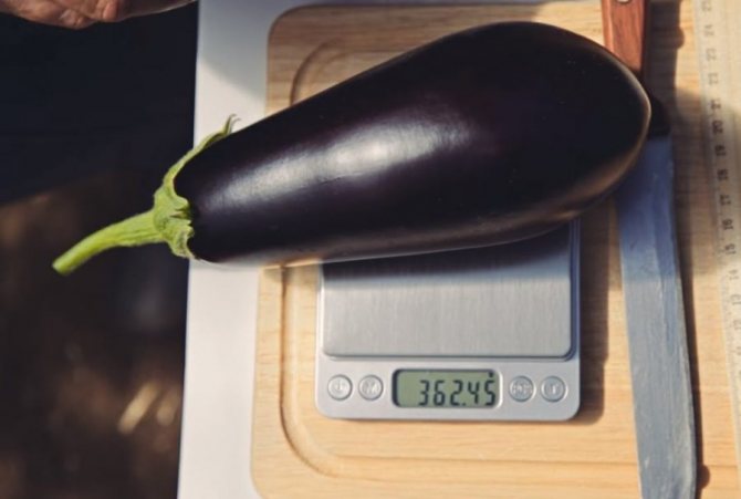 Нижние плоды на кустах баклажанов Рома могут достигать веса в 500 г и выше, но такие плоды являются переросшими – у них толстая кожица, семена более крупные и твердые, а вкус мякоти становится пряным