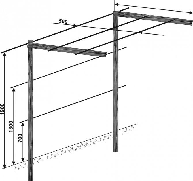 В том случае, когда почва достаточно плодородная и есть возможность часто поливать виноградники, можно рассмотреть вариант, как сделать шпалеру двухплоскостную.