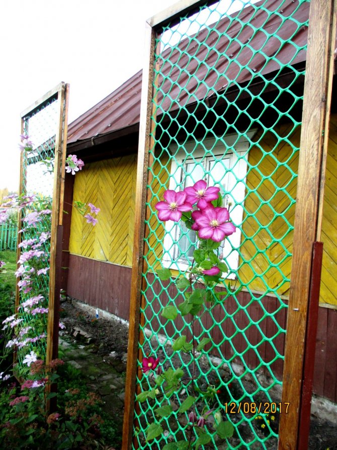 - Ширина. Если цветку нужно много пространства для роста, то надо сразу брать подпорку в виде сетки или забора. Для одиночных растений прекрасно подойдут небольшие столбики из металла или древесины.