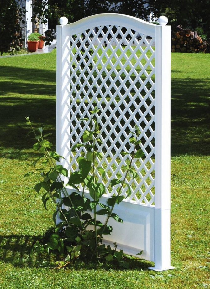 Для поддержки сгодится и пластиковая конструкция. Главная особенность этого материала в том, что он очень легкий и практичный. С установкой пластиковой поддержки справится даже человек, который ни разу в жизни не держал садовые инструменты. Еще один плюс этого материала в том, что его можно декорировать.