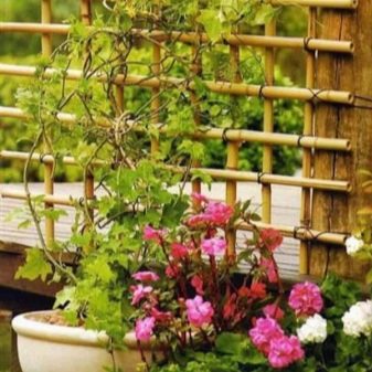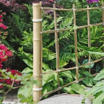 Отдельного внимания заслуживает такой материал, как бамбук. Он более легкий, чем обычное дерево, но при этом не менее прочный. Бамбуковые опоры используются для того, чтобы поддерживать вьющиеся растения. Лучше всего бамбуковые подпорки подходят для таких растений, как лианы, клематис и некоторые виды роз. На фоне бамбуковой основы их зеленая листва смотрится невероятно красиво.