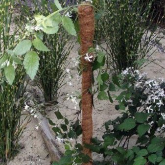 В ее основе – простая деревянная палка, которую для прочности покрывают металлической проволокой и декорируют кокосовым волокном. Неудивительно, что такая конструкция способна выдержать даже самый большой вес «зеленого друга». Купить коксовое волокно можно в любом магазине для садоводов. Все разновидности подпорок для цветов по-своему хороши. Поэтому выбирая вариант для своего сада, нужно смотреть на особенности каждого подвида.
