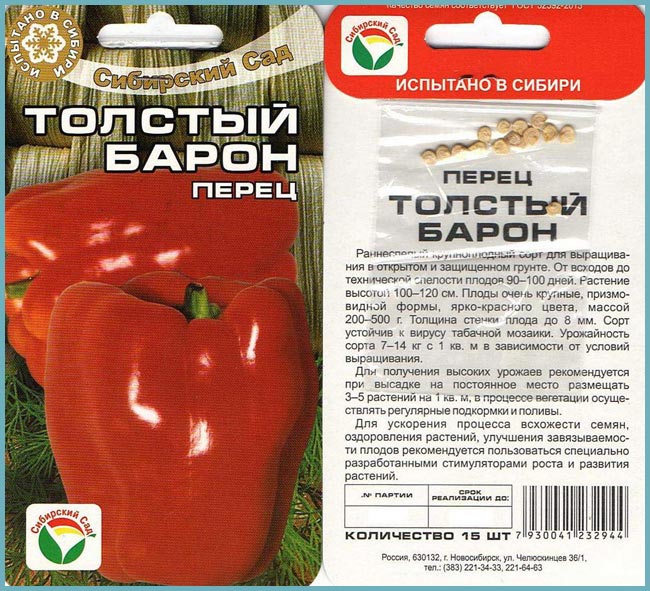 «Толстый барон» — среднеранний сорт сладкого перца с красными плодами. От момента всходов до созревания плодов в среднем проходит 120-130 дней. Растения этого сорта высокие, мощные и хорошо облиственные. Плоды имеют конусовидную форму. При наступлении биологической спелости становятся ярко-красными, а в технической фазе они светло-зеленой окраски.