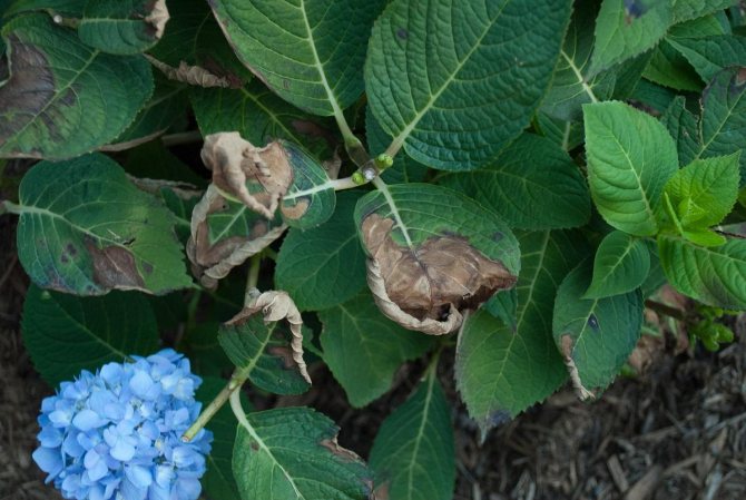 Не разобравшись с причиной поражения гортензии, опасно предпринимать какие-либо действия самостоятельно, это может привести к неминуемой гибели растения.