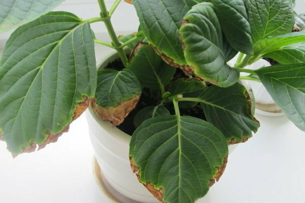 Гортензия, это кустарниковое растение, которое не оставляет равнодушными ни одного садовода. Её большие шапки, которые образуют соцветия, впечатляют, когда начинается цветение и продолжают восхищать на протяжении нескольких месяцев. Эти растения имеют крепкий иммунитет, который отлично служит защитником от многих заболеваний и вредных насекомых. Однако, при неправильном уходе, могут возникать некоторые проблемы, которые надо быстро решать. Одна из них, это высохшие по краям листья. От того как чувствуют себя листья, зависит общее состояние растения, потому что без них, кусты не смогут развиваться и погибают.