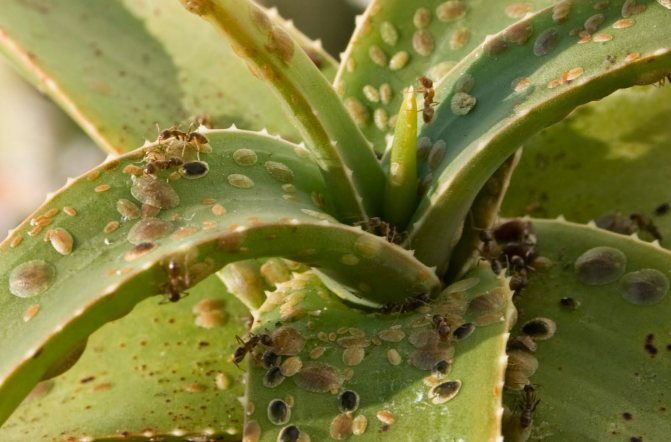 Алоэ редко подвергается нападению насекомых. Особую опасность для цветка представляют: