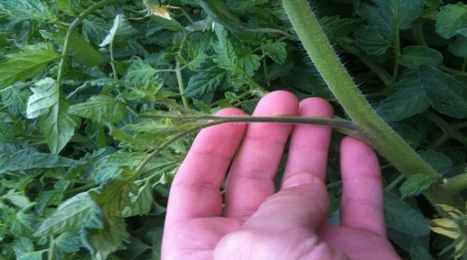 В начале развития помидор выпускает один основной ствол. К нему крепится при помощи длинных черешков резная листва. В пазухах появляется побег, он же пасынок. Его и удаляют в ходе процедуры.