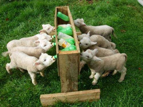 Для того, чтобы накормить небольшое количество животных, достаточно нескольких детских бутылочек. Такие можно купить в аптеке. Если поголовье большое, рекомендуется пользоваться специальными ведрами. К ним присоединяются соски, через них детеныши получают еду маленькими порциями.