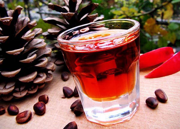 - очищенный самогон, настоянный на кедровых орехах — 3 л.