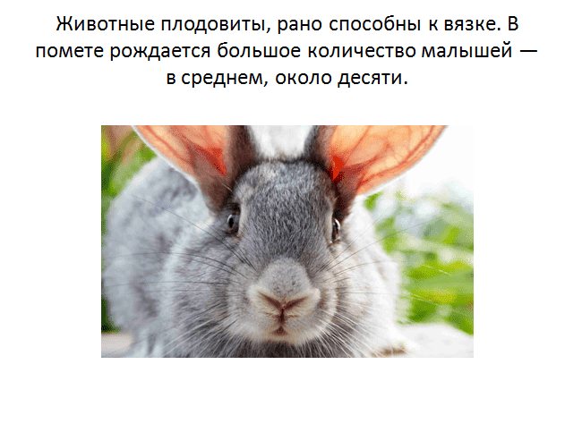 Мясные породы кроликов отличаются следующими важными характеристиками. Очень высокими темпами роста крольчат. Животные быстро набирают вес, за короткий период времени становясь довольно тяжелыми и упитанными. При этом детеныши «мясных» кроликов рождаются здоровыми и приличного размера. Выживаемость их довольно высока.