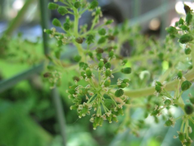 Виноград Таежный характеризуется функционально женскими цветками, что в отсутствии другого сорта приводит к ухудшению завязывания плодов.