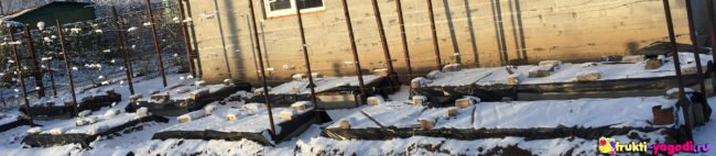 Сразу после разметки площади стоит установить опоры для лозы, только после этого выкапывать ямы. Имейте ввиду: копать придется много, так как сначала выемка в земле должна составлять около 1 м в глубину и примерно такое же расстояние вглубь субстрата. Первые 20 см дна необходимо засыпать песком или щебнем, а дальше в качестве дренажной системы положить 10-сантиметровый слой древесной стружки.
