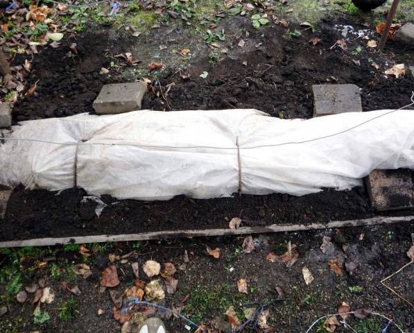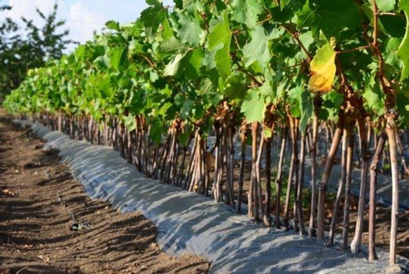 - В суровом климате лозу Таежного необходимо укрывать на зиму . На землю около винограда настилают доски или другой материал. Уложенную лозу пришпиливают металлическими дугами или связывают. Теперь нужно накрыть побеги агроволокном, толью или брезентом, сверху укрытие засыпают землей.
