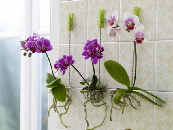 Эту емкость можно поставить горшок из стекла или пластика, который подходит под интерьер, таким образом, спрятав его. Некоторые сорта мини-орхидей выращивают в подвешенном виде, так как они имеют богатые гроздья цветков. При этом горшки для орхидей должны быть прозрачными, это обеспечит лучший доступ света к корневой системе.